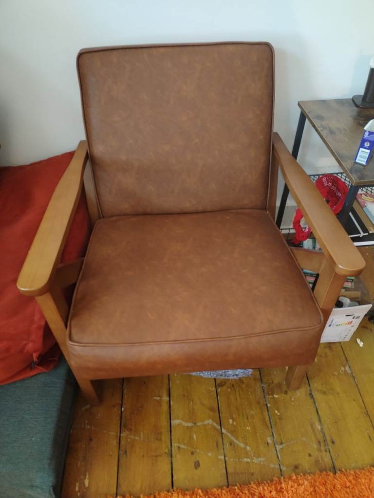As in the description. Comfy, good for working from or sitting with a coffee and reading a book. Comfy. Mid century style. Original price £25, selling at a big reduction. Will not respond to low ball offers but open to respectful ones. Collect only.