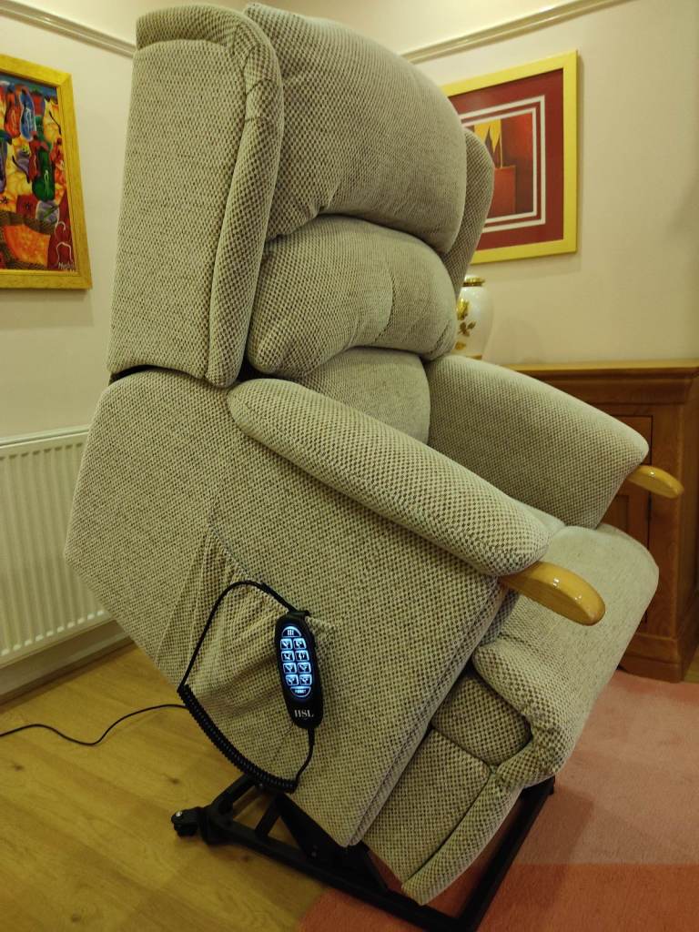 FOR SALE - TOP OF THE RANGE AYSGARTH FOUR MOTOR RISER RECLINER CHAIR PURCHASED FROM HSL SOFAS AND CHAIRS IN HULL AT A COST OF £2600. THE CHAIR IS AS NEW AND UNMARKED AND HAS BEEN FULLY COVERED FROM DAY ONE, AND HAS ONLY BEEN USED FOR SIX WEEKS. IT HAS FULLY ADJUSTABLE RECLINE, LEG SUPPORT, ADJUSTABLE AND HEATED LUMBAR SUPPORT, ADJUSTABLE HEAD SUPPORT, AND FULLY RECLINES IF NEEDED FOR SLEEPING ETC. IT IS A VERY COMFORTABLE CHAIR AND ALSO INCLUDES A GOOD QUALITY TOTALLY UNMARKED COVER FOR THE CHAIR ( AS SHOWN IN THE PHOTOS ). GENUINE REASON FOR SELLING IT.