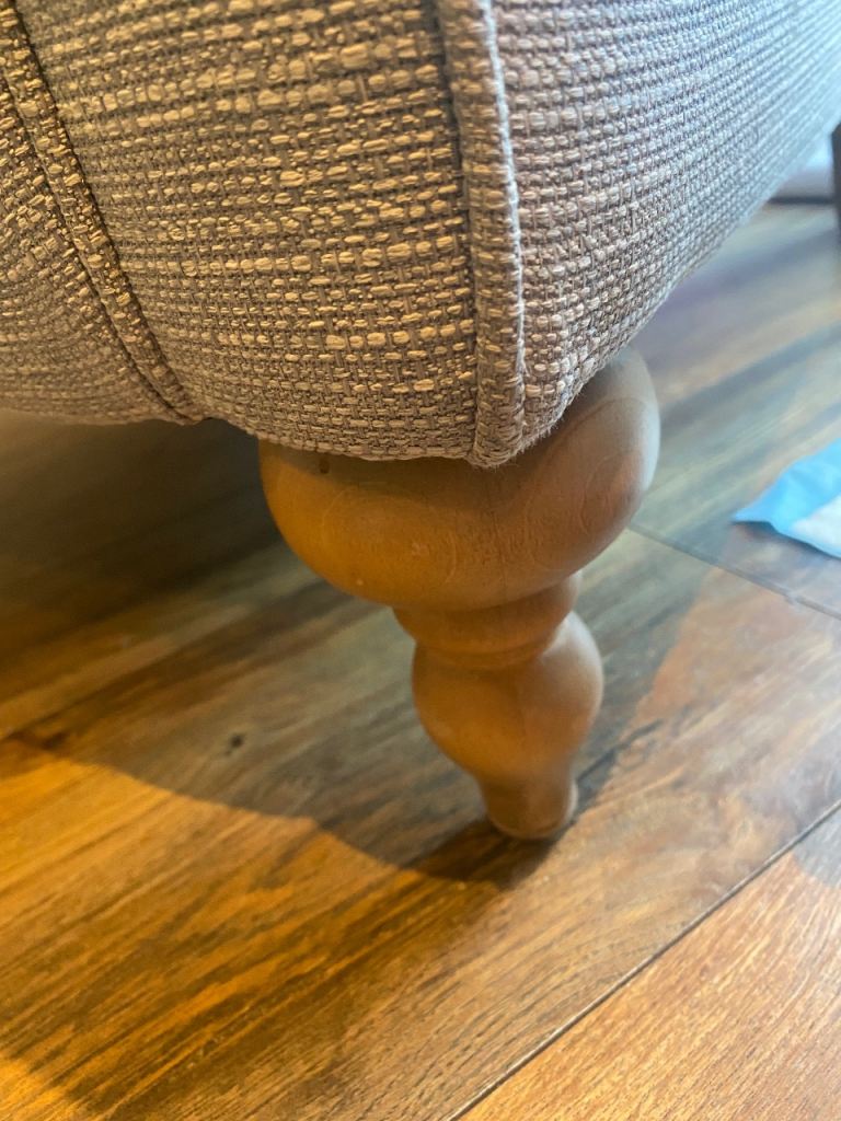 A well used and loved armchair. Has wear and tear as you will see from the pics but a very comfortable armchair with lots of life left, just needing some upholstering.