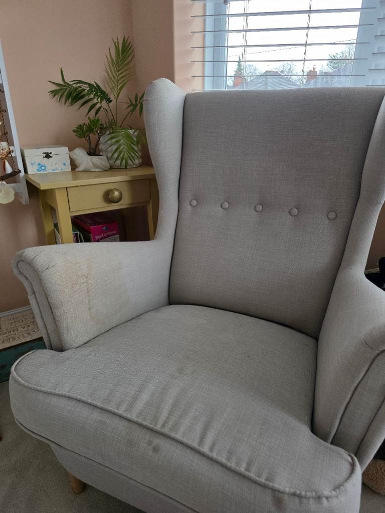 Ikea armchair in good condition. Has some staining as pictured that could he removed, however comes with a clean white cover
