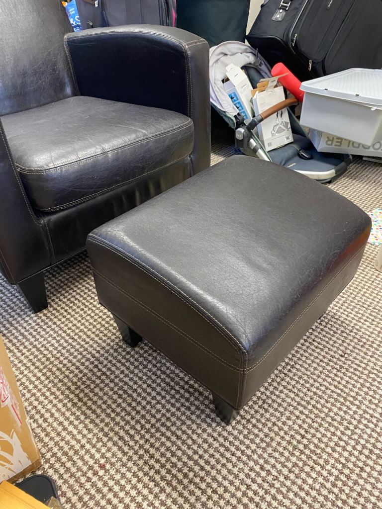 IKEA faux leather armchair and footstool