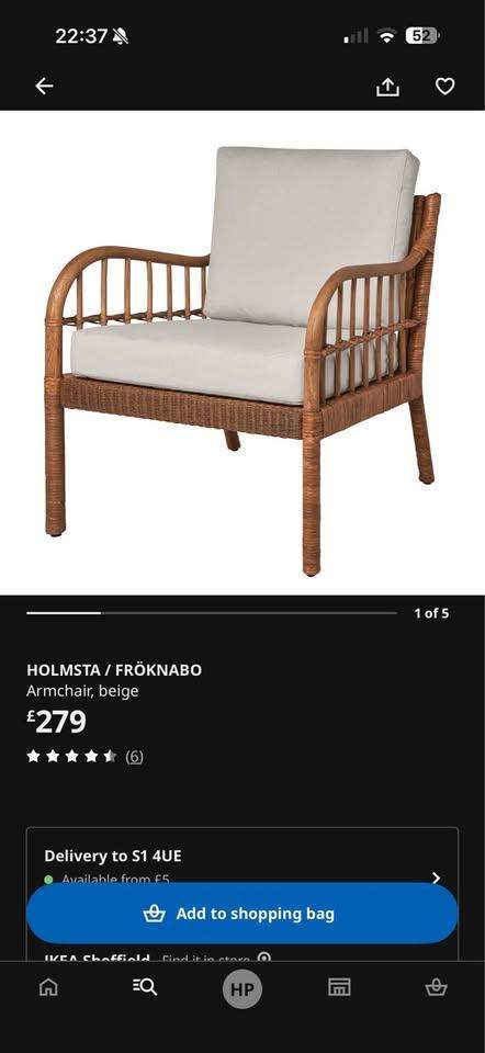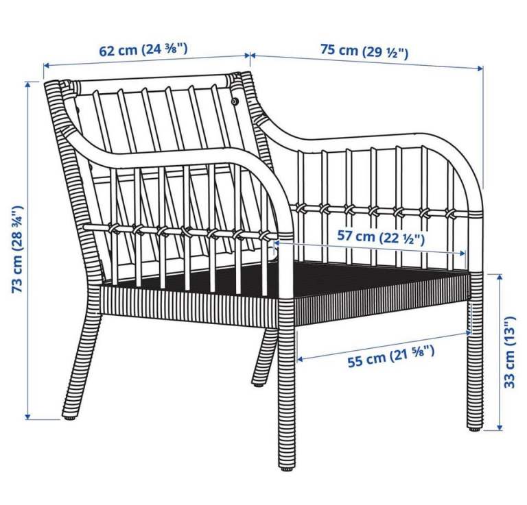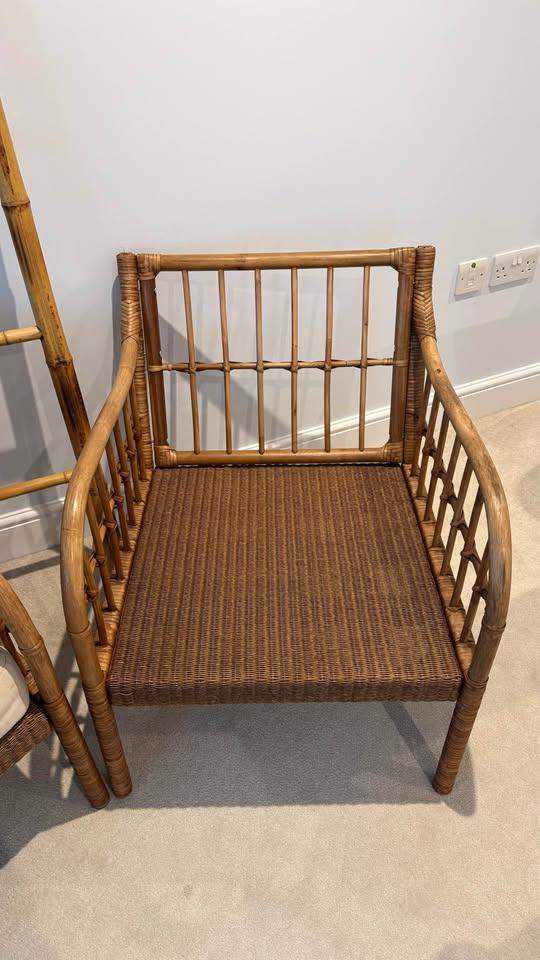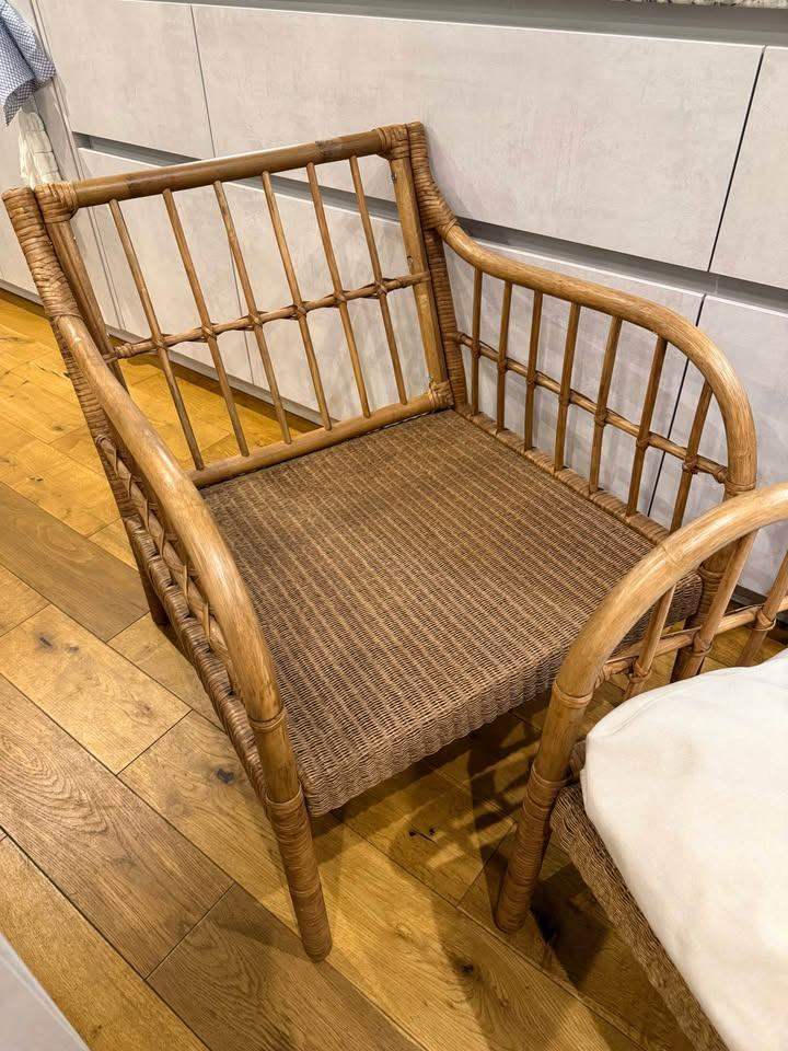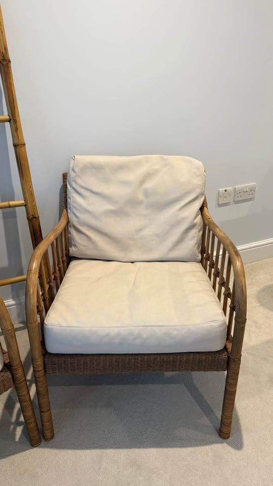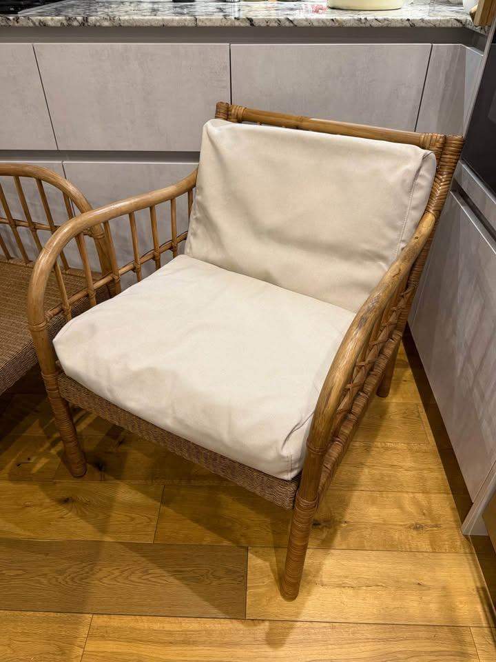 IKEA Holmsta Froknavo Handwoven Rattan Bamboo Wood Garden Armchairs Cushions x2