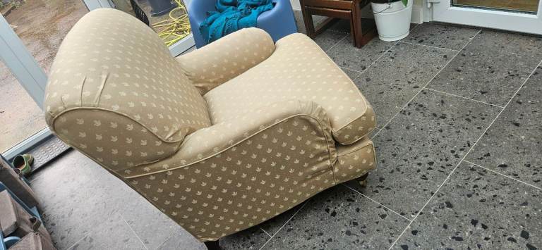 Large MultiYork armchair and footstool. Upholstered with removable/washable covers from a smoke free household. Genuinely comfortable chair with matching footstool. has only had light use as a bedroom chair.