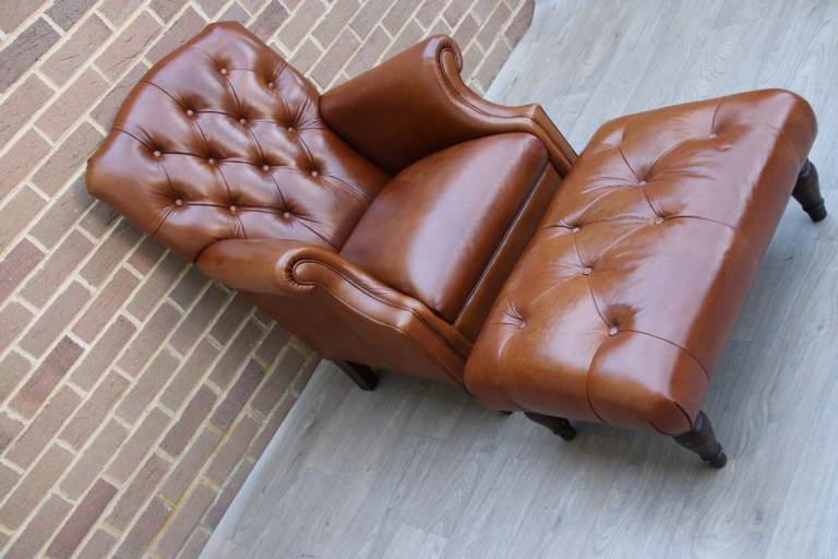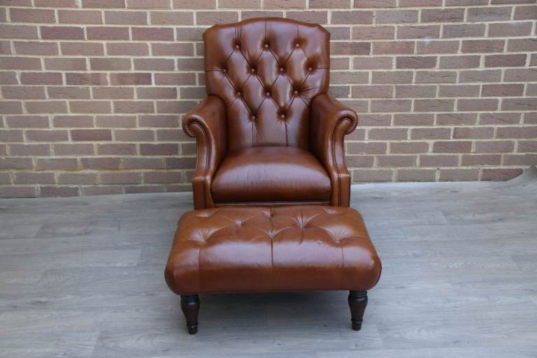 Complement your home and your living space with the timeless Lancaster unique genuine leather armchair + footstool
