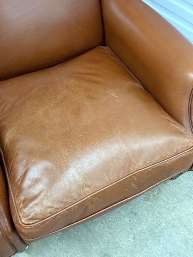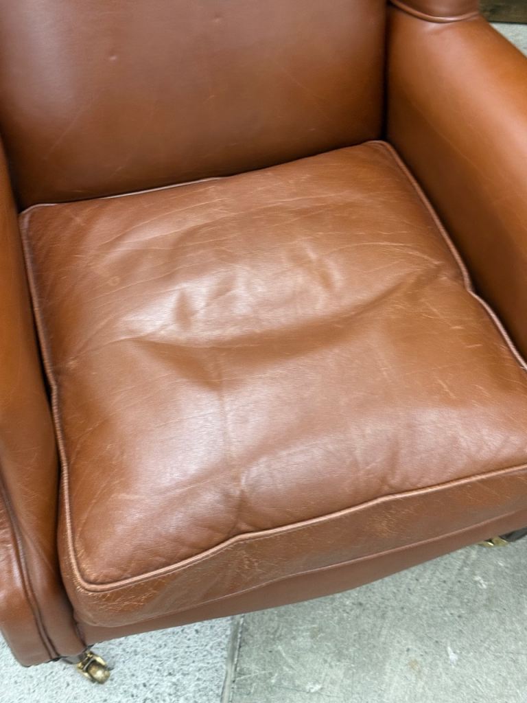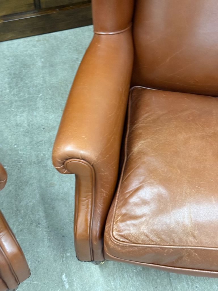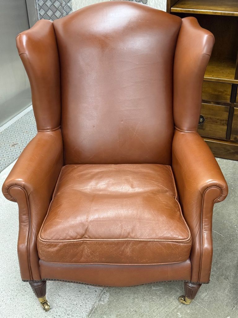Laura Ashley pair of southwold leather armchairs wingback chairs caramel leather