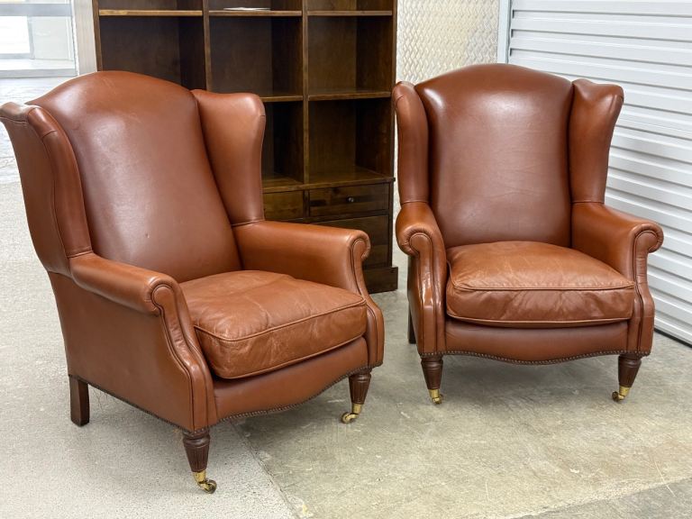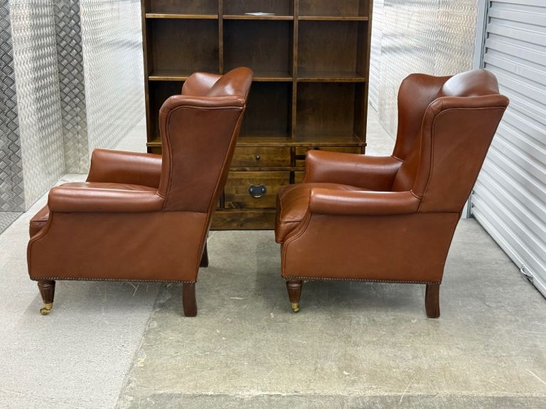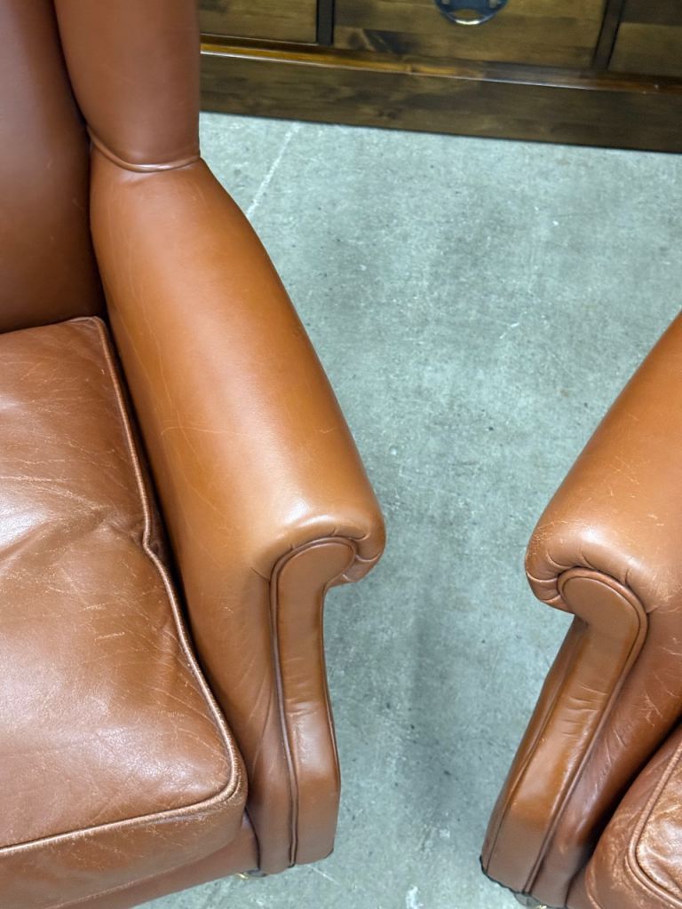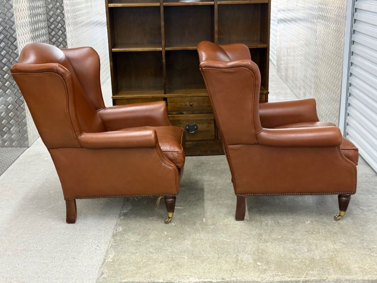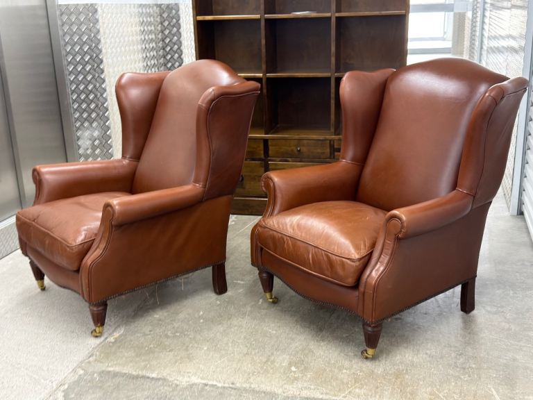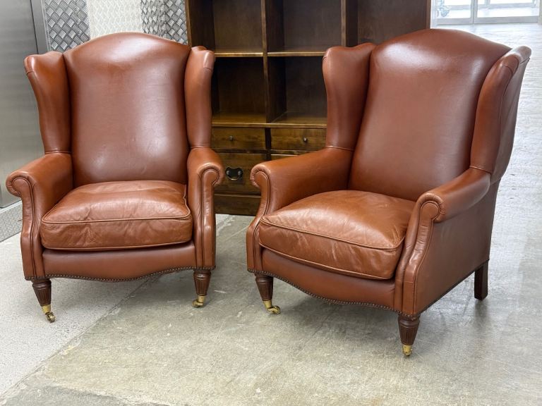 Laura Ashley pair of southwold leather armchairs wingback chairs