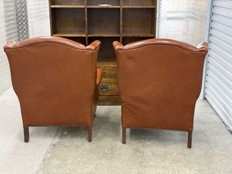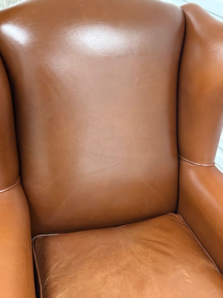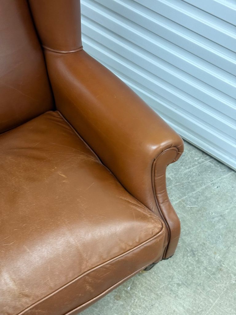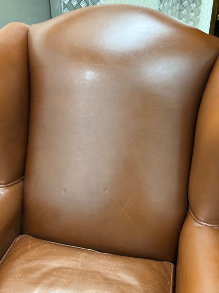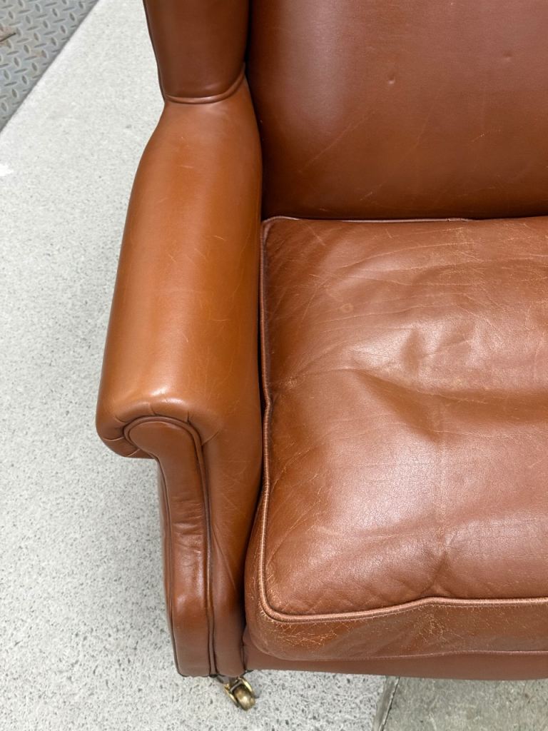 Laura Ashley pair of southwold leather armchairs wingback chairs