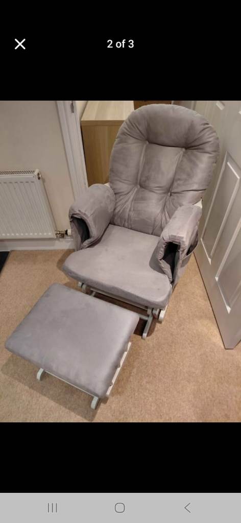 Grey nursery chair and matching footstool. Hardly used. The odd mark but very good condition.
