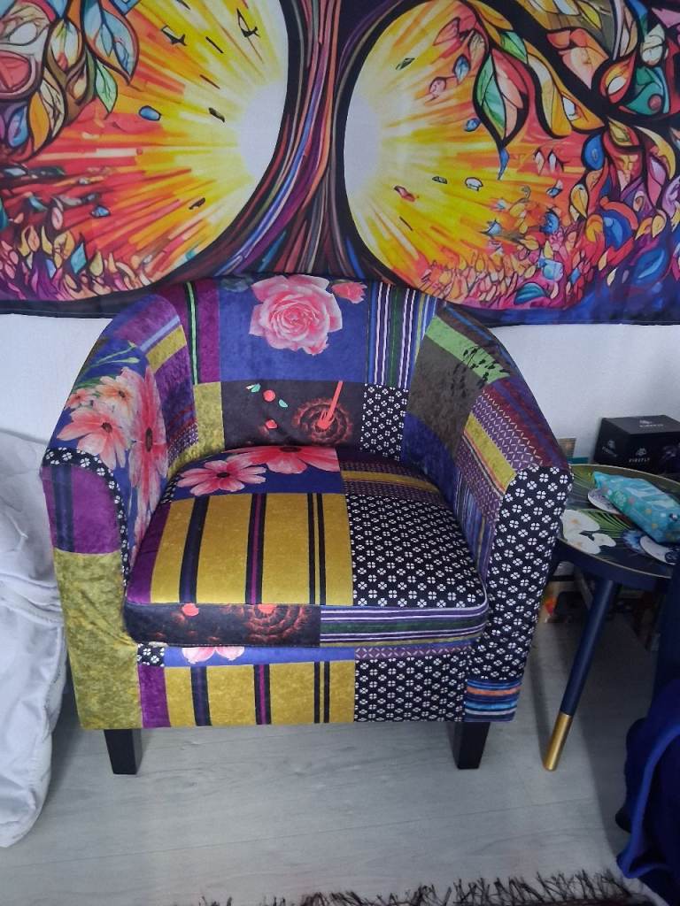 Patchwork chub chair excellent condition all round lovely colours only 3 months old £35 ono