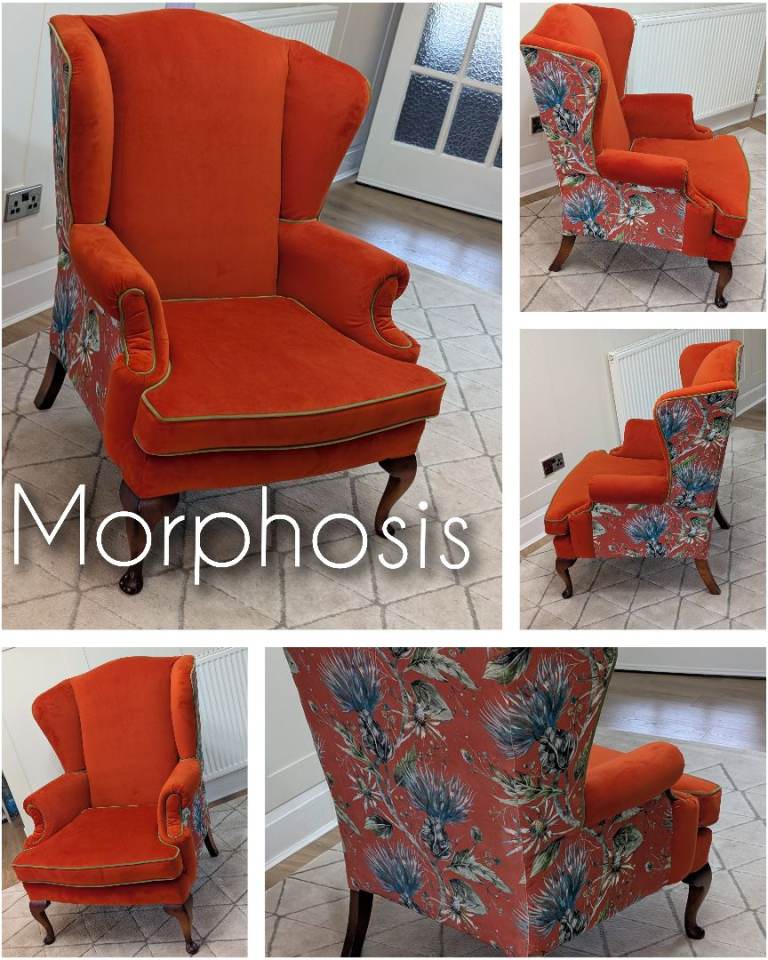 Fully restored and newly recovered Wingback Armchair.