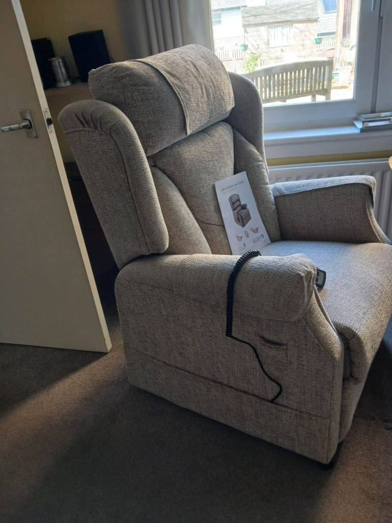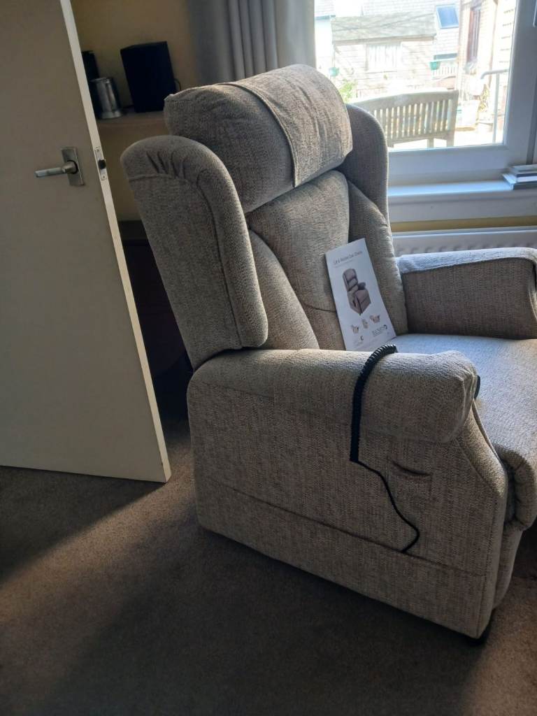 Electric Riser recliner chair in perfect condition. Less than a year old. Paid £2000. Would accept £800. This chair is in absolute mint condition but would accept offers