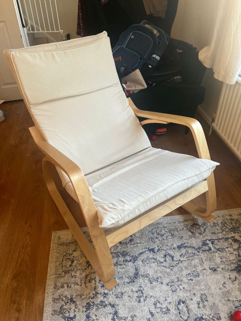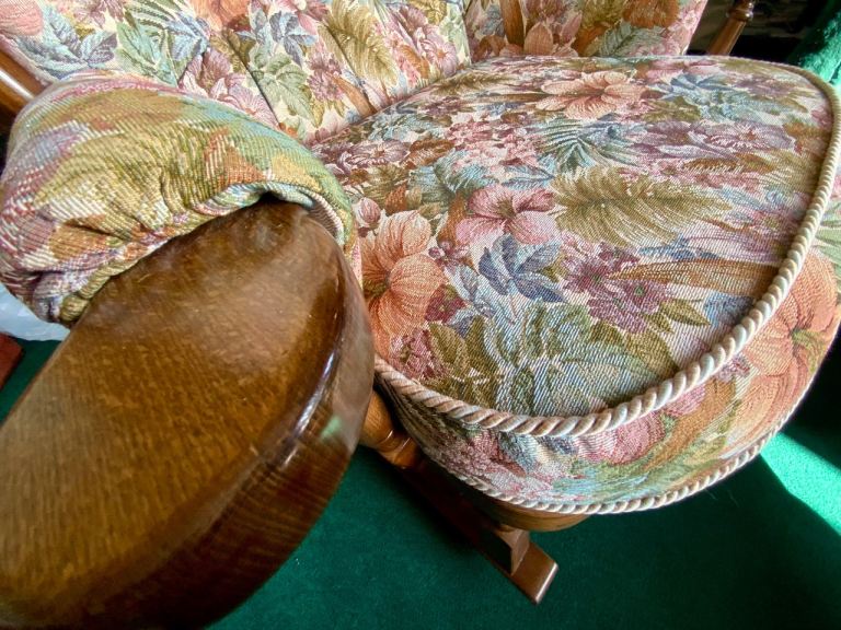 A rare opportunity to enjoy the incredible comfort of a genuine British made Joynson Holland Rocking Chair… Made with the highest quality wood and material… offering the most luxurious and comfortable soothing rock! This is from a smoke and pet free home. An ideal gift for that special person.