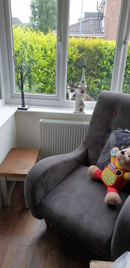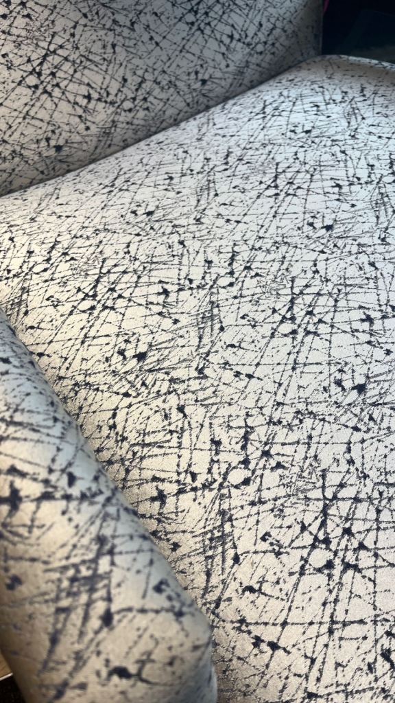Sofa and Chair Company spiro armchair white and dark navy bespoke fabric ex display model never used dimensions 87 cm d x 75 cm w x 80 cm h excellent condition collect Chiswick w4 5tt collect interiors of Chiswick
