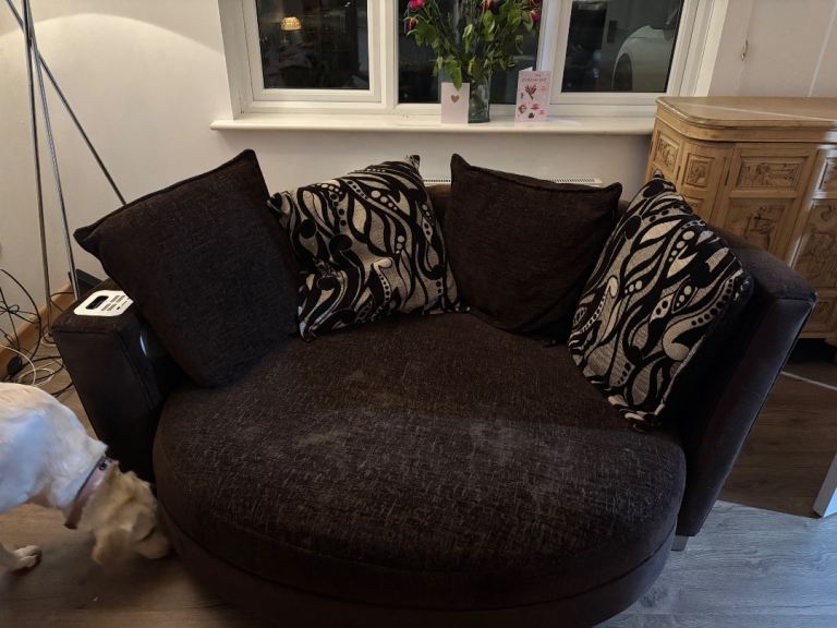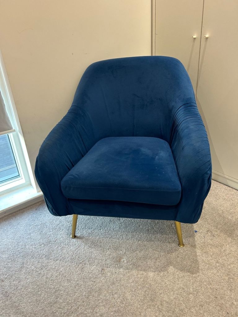 A stunning navy velvet spinning sofa chair. 6 months old only, excellelnt condition, hardly used. Cosy & comfortable. Selling due personal reasons.