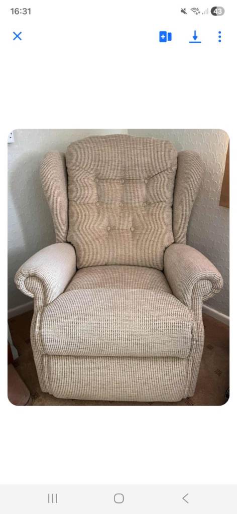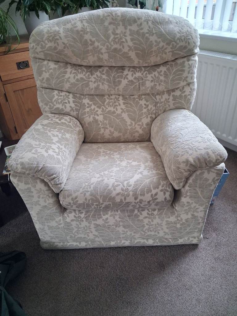 This armchair is in very good condition with no tears. Comes with a matching cushion. Will deliver if close by.