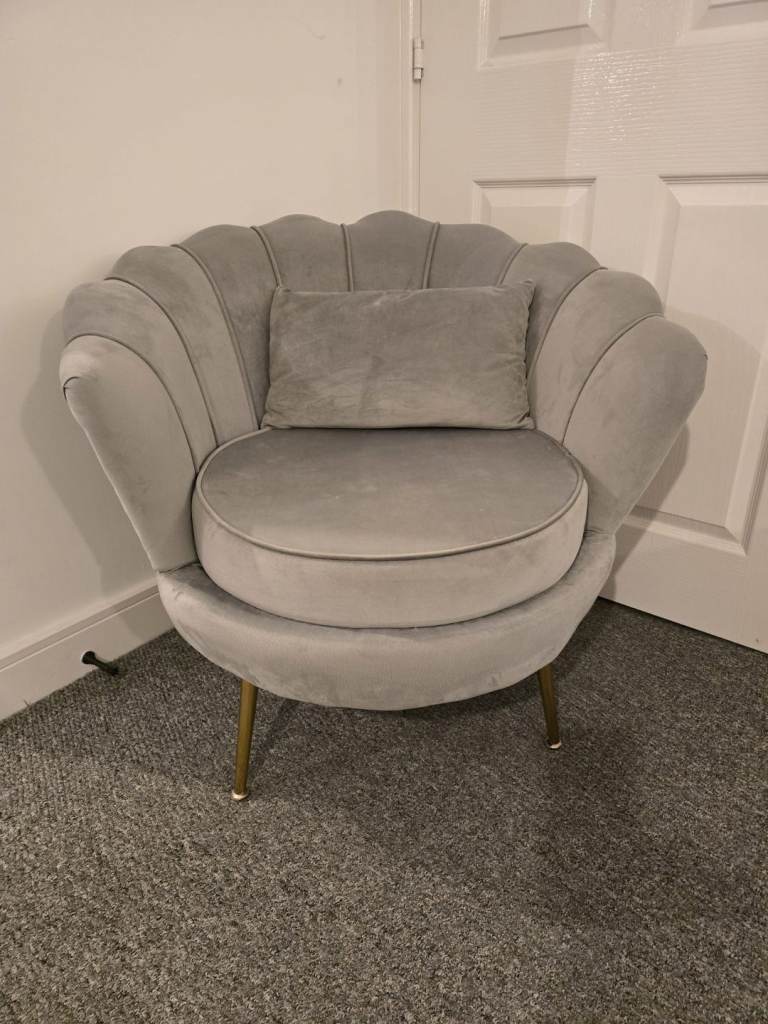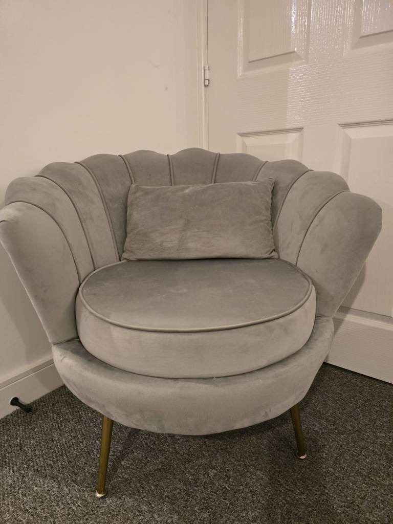 Posting for 2+ yearsVelvet Armchair in grey with cushion