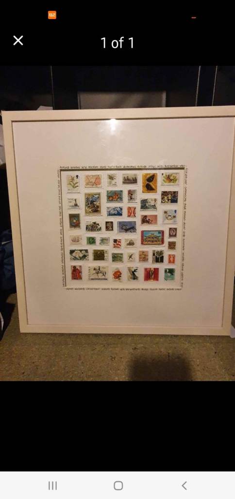 Beautiful handmade picture made with vintage and used stamps from all around the world