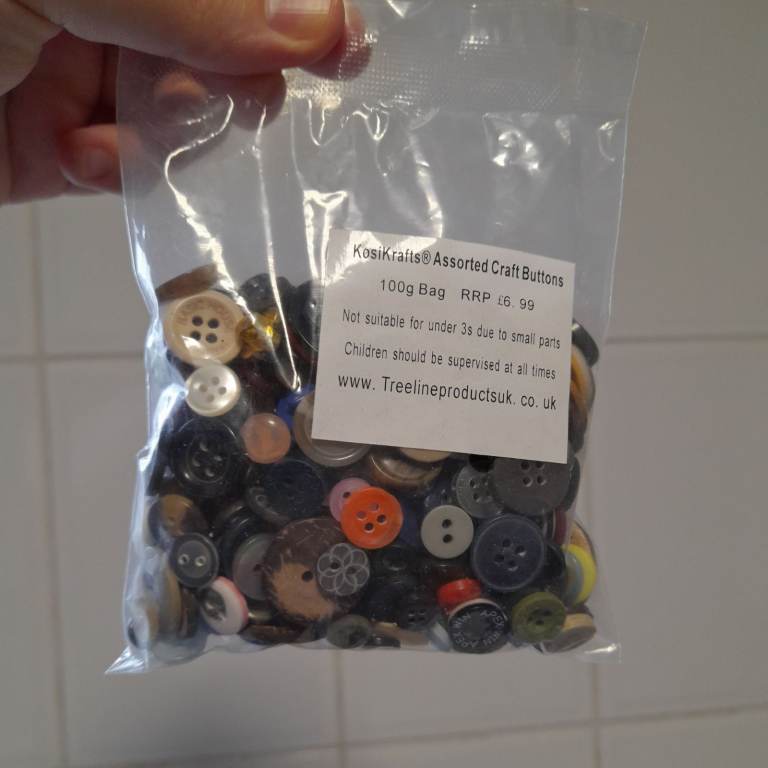 Price is for 1kg worth of buttons (10x 100g sealed bags) / Style, size and colour of buttons vary / RRP (of each bag) is £6.99 / Over 60% saving