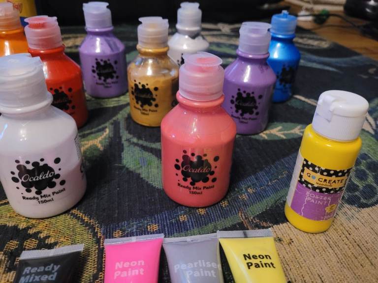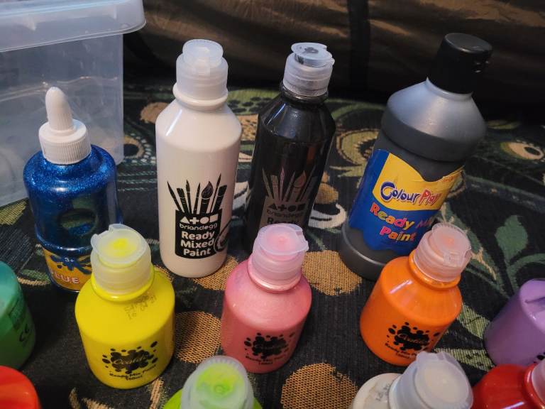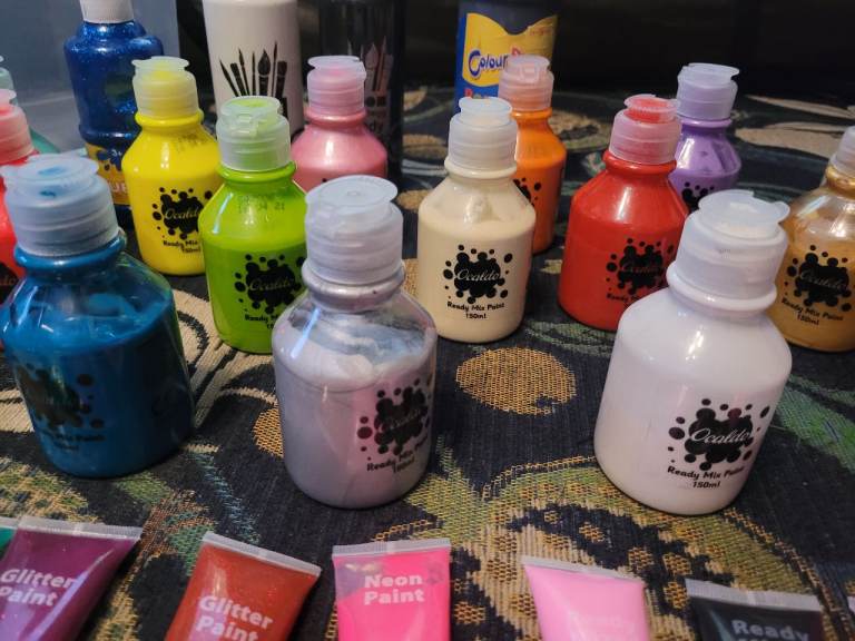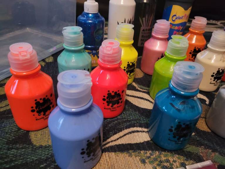A selection of 25 bottles of ready mixed paint,most bottles full or 3/4 full.