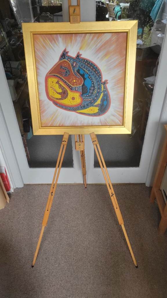 artists easel... a good quality easel by daler rowney branknell england...the painting on the easel is not for sale.. pick-up only