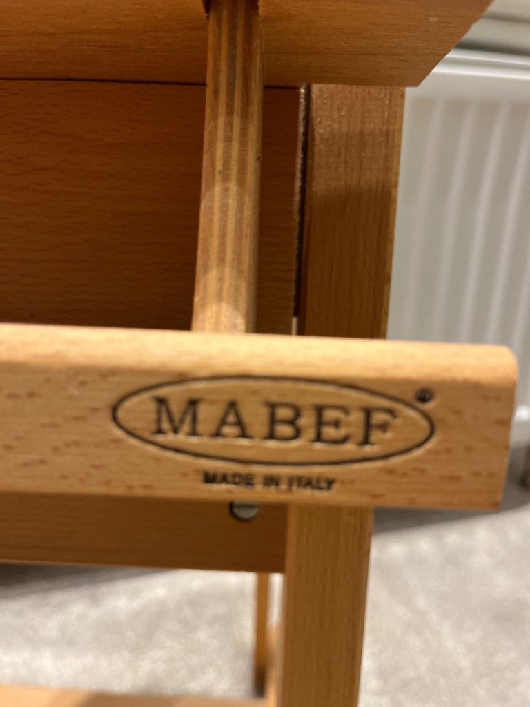 Beautiful Artists Easel by Italian art supplier Mabef. In great condition, used sparingly by my daughter and ready for use. Can be adjusted for height or angle, very easy to use. Selling due to downsizing…