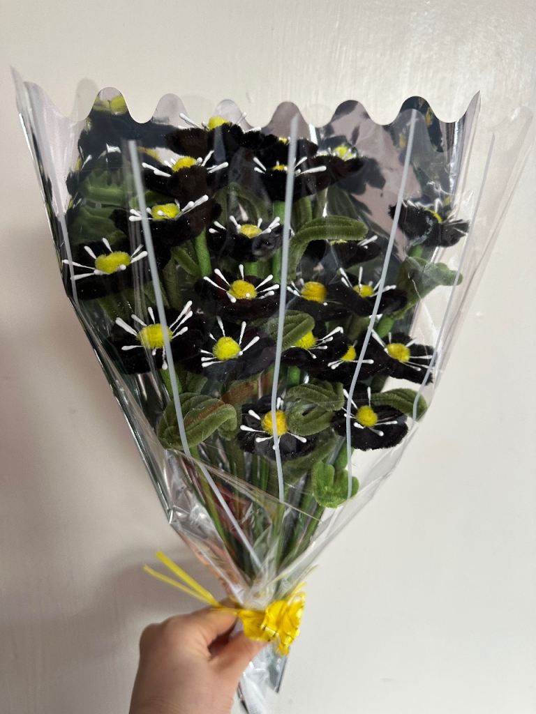 Black Artificial Flower Bouquet – Handmade, New Condition