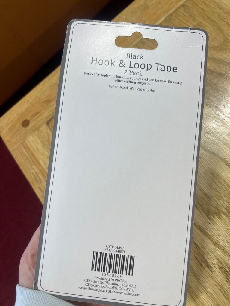 Black hook and loop tape - Velcro 1.9cm wide by 2.4 m long