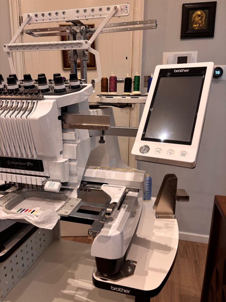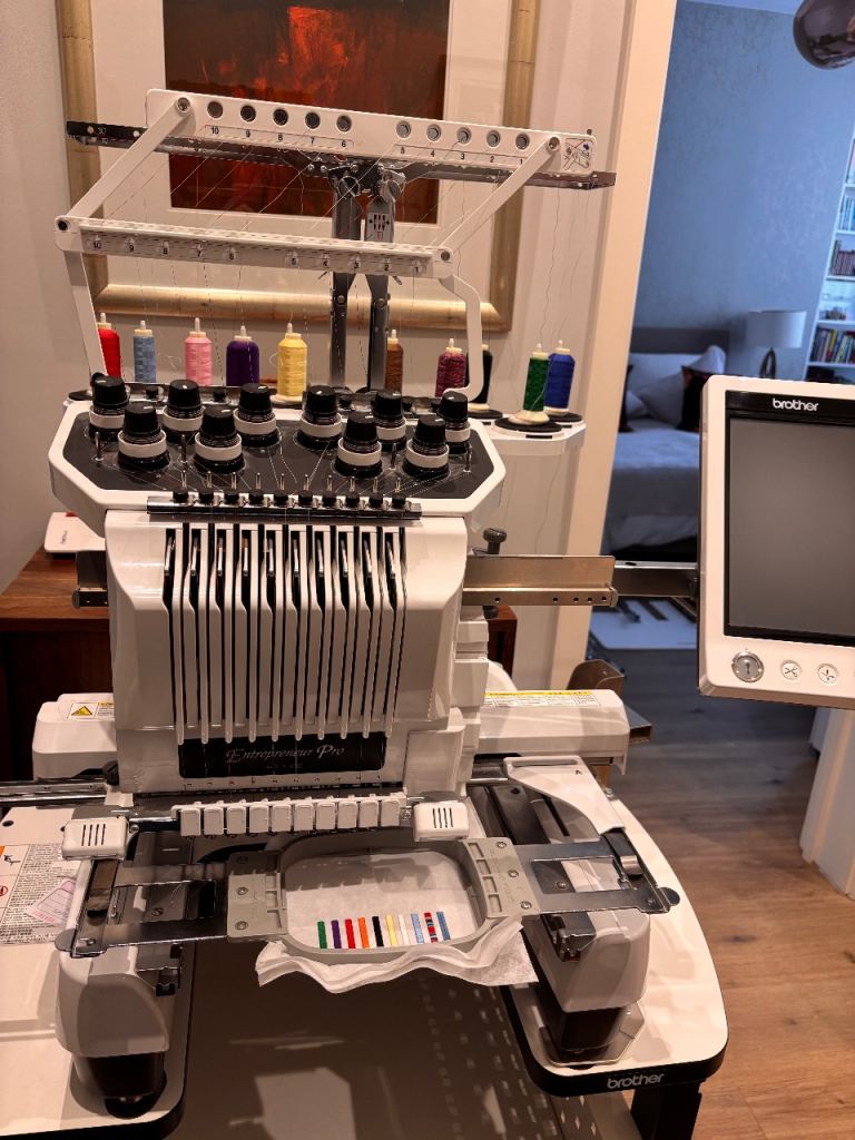 I'm selling my Brother PR1000 10-needle embroidery machine, which has been lightly used (only 428 hours) and just received a full service, ensuring it’s in perfect working order.
