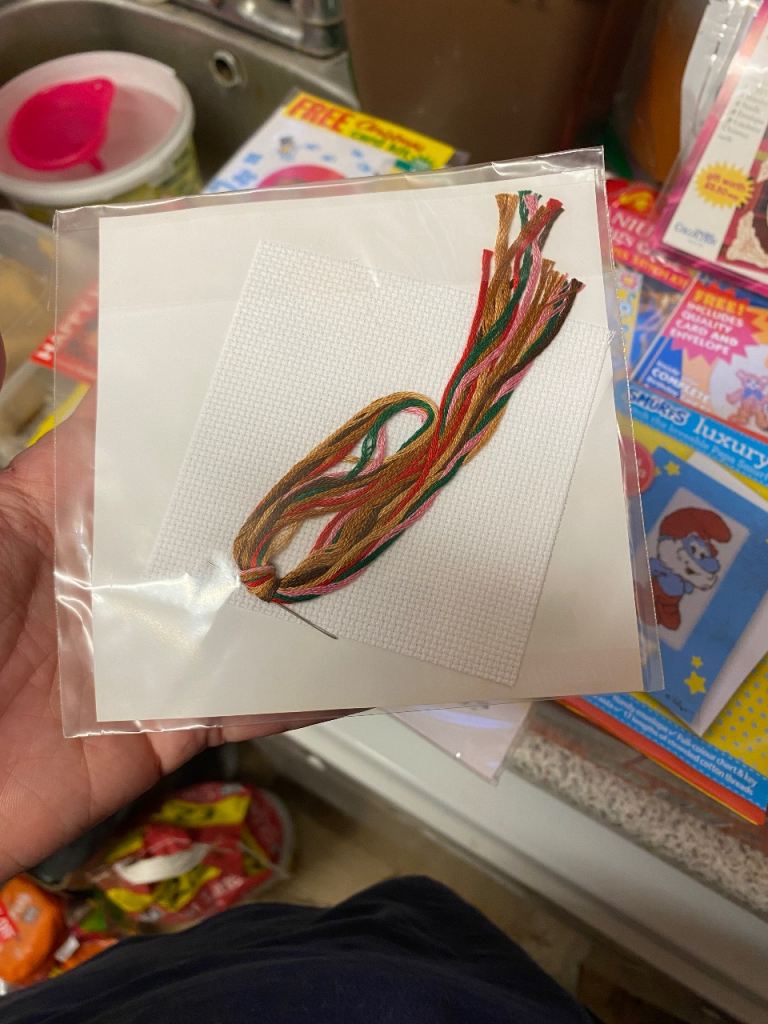 The kits provide everything needed to stitch a simple card, including instructions, needles, and envelopes.