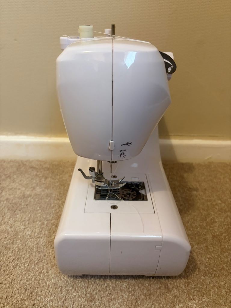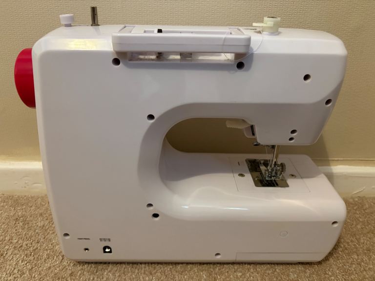 This is a great little sewing machine which is both compact making it easy to travel with and reliable. It comes with a power cable and foot pedal, making it easy to set up and use for various crafting projects.