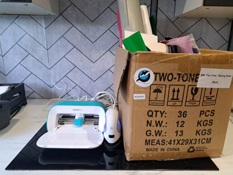 Selling due to upgrading machines. In perfect condition. I have a massive box of supplies to go with it including matts, extra cutting tools, loads of vinyl , blank keyrings , bookmarks and loads more. Would be the perfect starter kit for a little business or something.