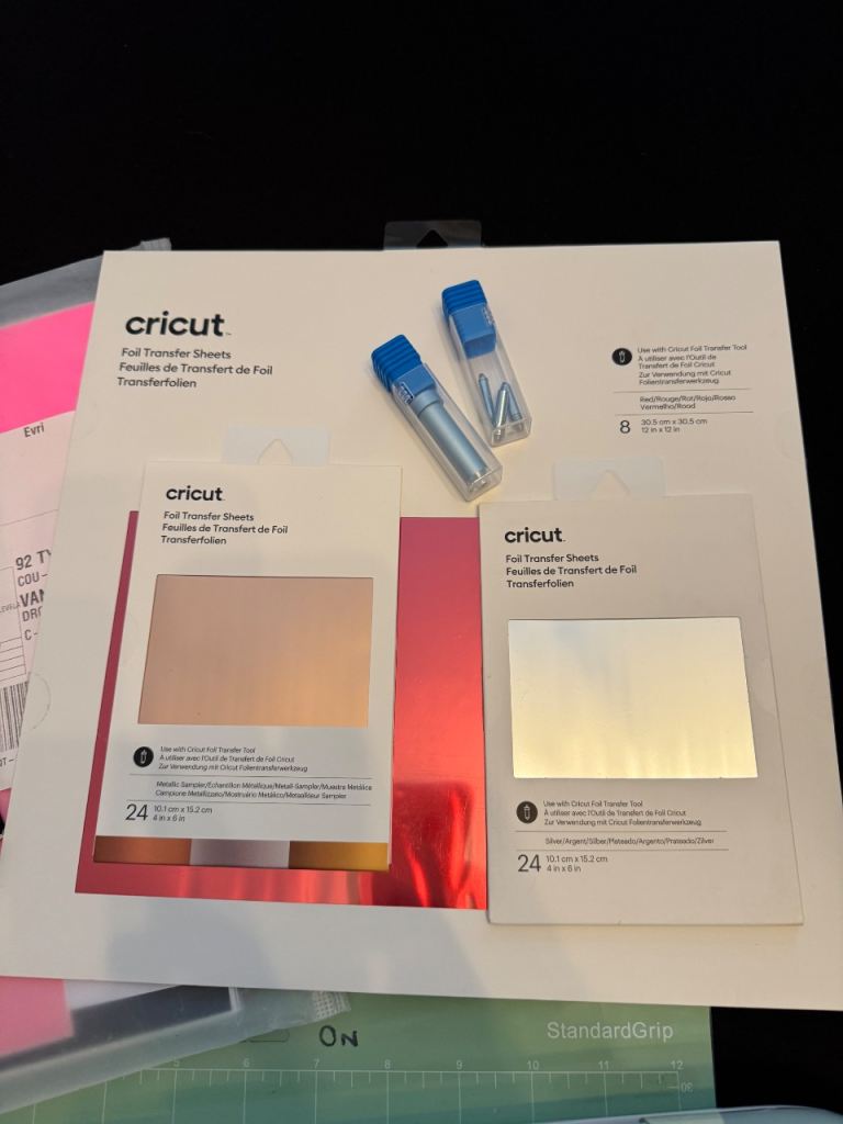 Assortment of Cricut foils in different colours,