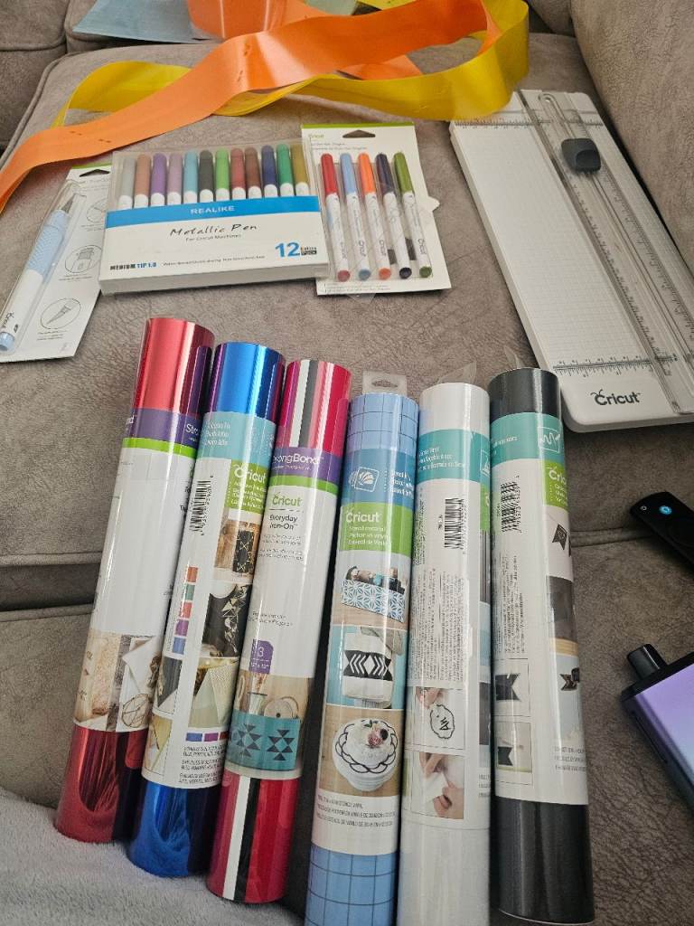 Selling due to not using as much as I would of liked. Ive used it 3 times. Comes with everything in picture and the trolley which is brand new. All drawers are full of coloured card, paper, vinyl, keyring making set etc.