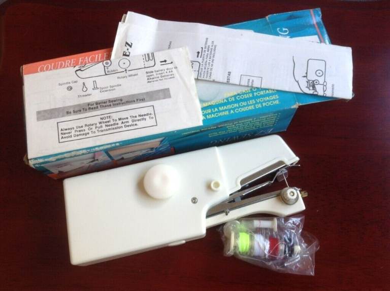 Hand held EZ sewing machine . Never used and still in box with full instructions and spools of thread etc that came with it.
