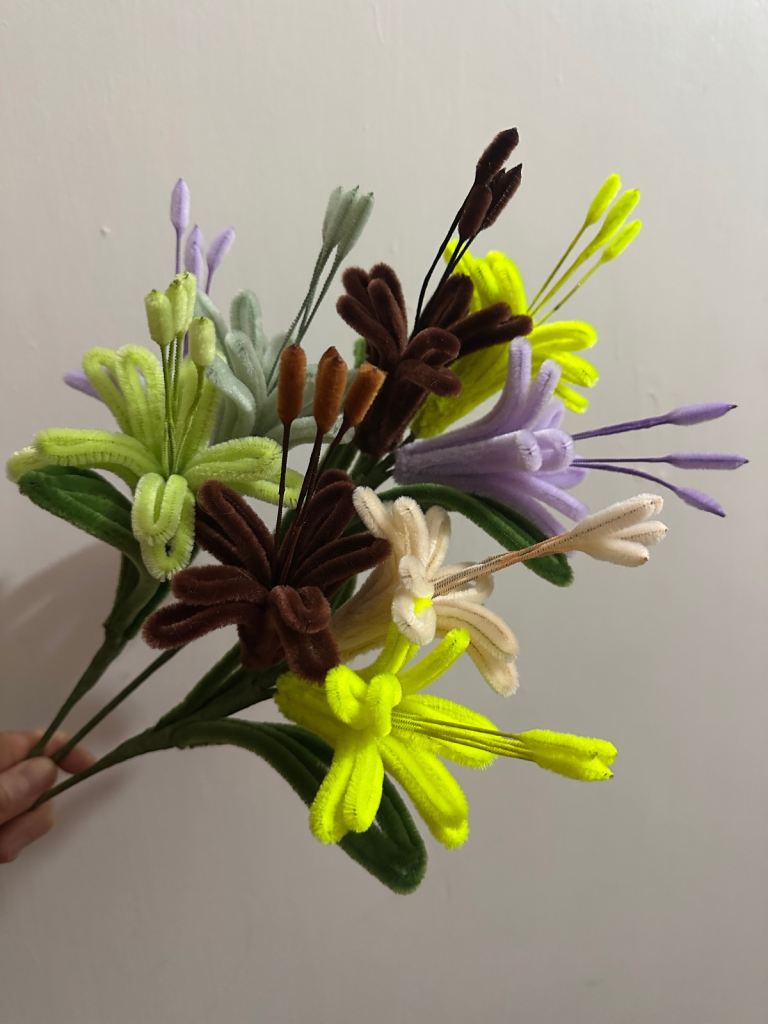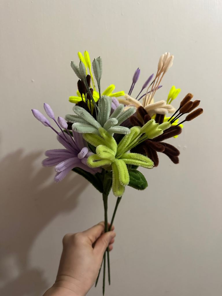 Handmade Pipe Cleaner Flowers – Multicoloured, New