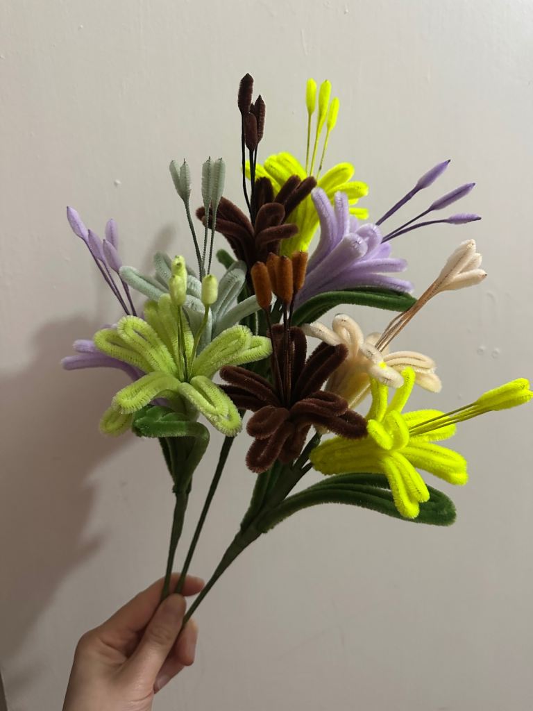 Lovely bunch of handmade flowers made from pipe cleaners, never used.