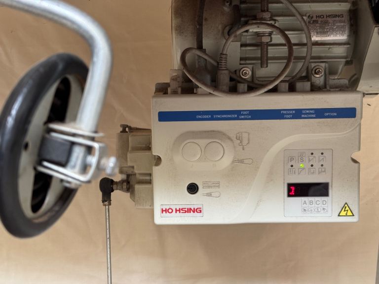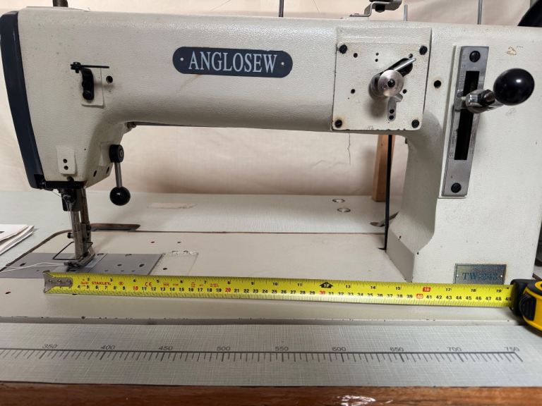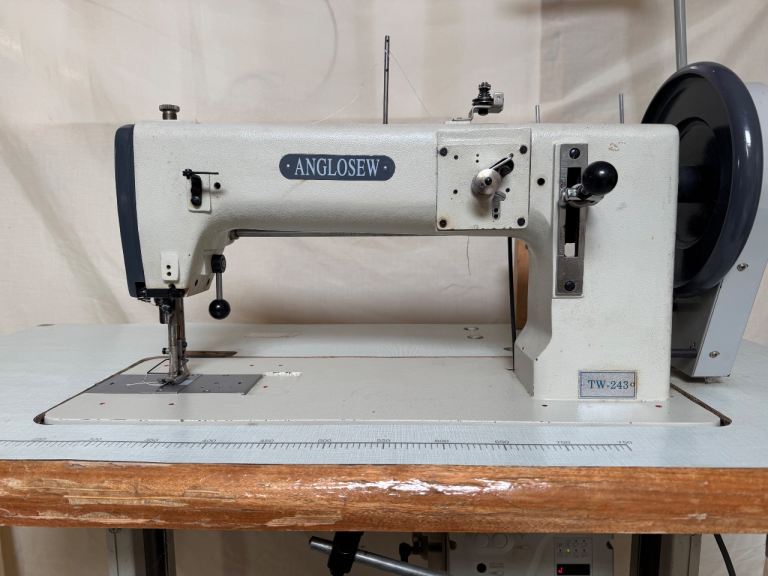 Heavy duty industrial sewing machine. Like seiko TH. Combination feed. Step motor. Long and deep arm. For leather, heavy canvas etc. used for sewing yurt covers.