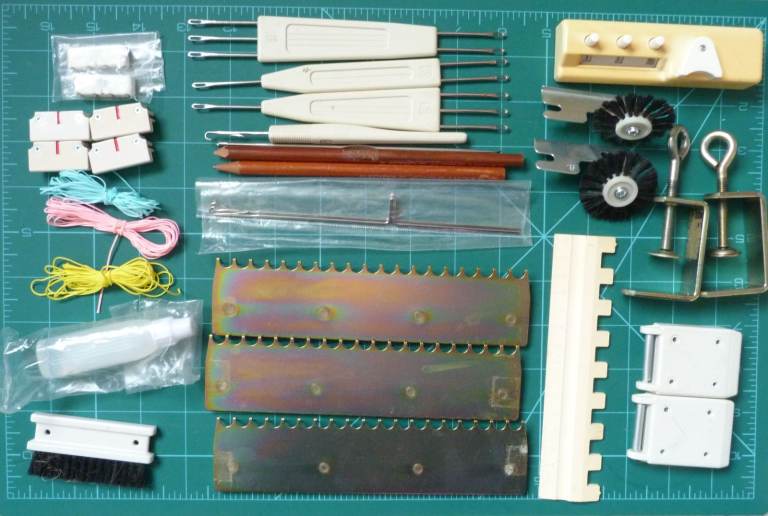 Knitmaster 890 chunky electronic knitting machine with most of its original accessories (missing carriage lock and tapestry needle). There is no manual included but this can be downloaded for free.