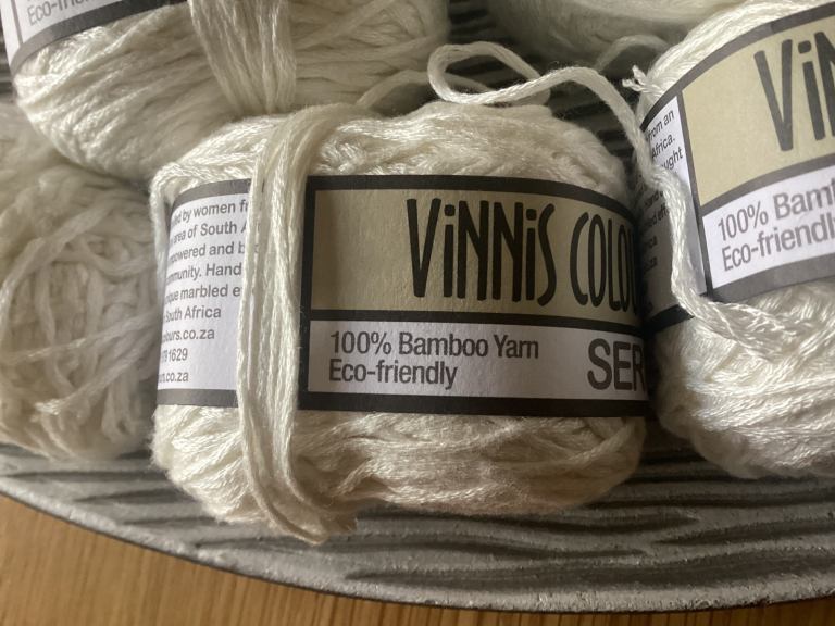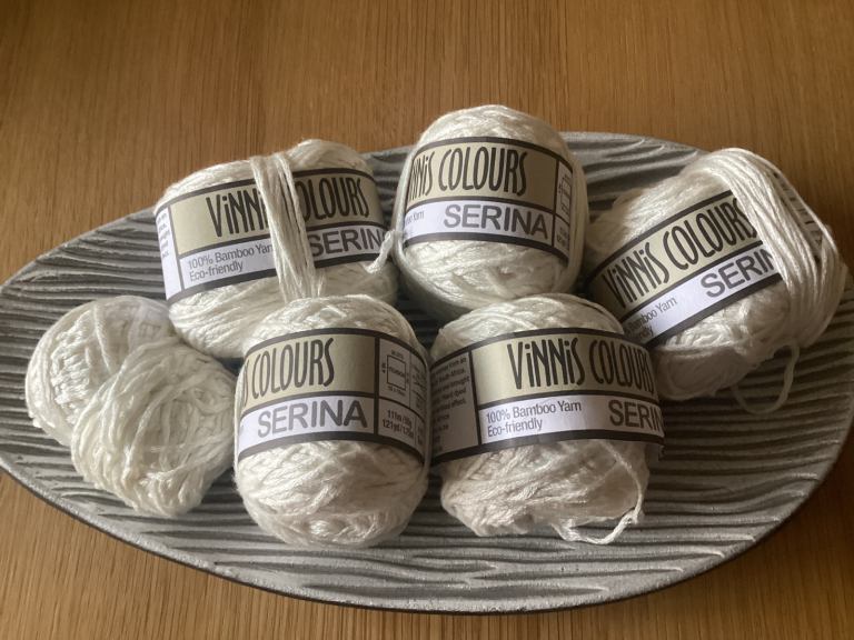 Finnish Colours Serina 100% bamboo yarn. 5 x 50g balls + oddment. Colour cream. Made in South Africa.