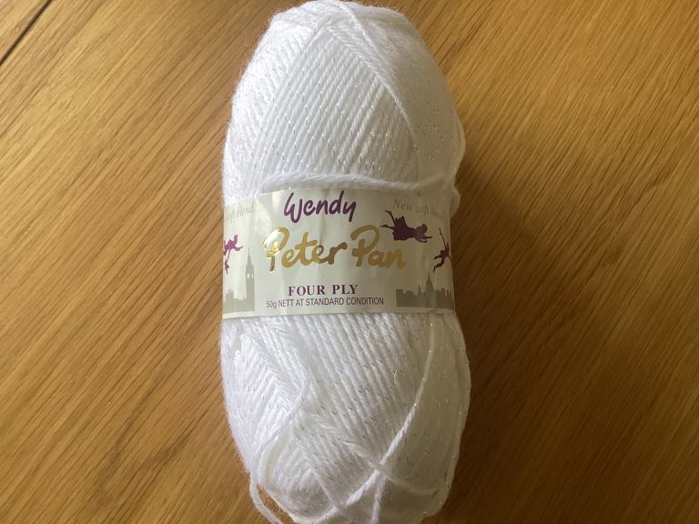 Peter Pan 4ply sparkly white 1 x 50g ball.