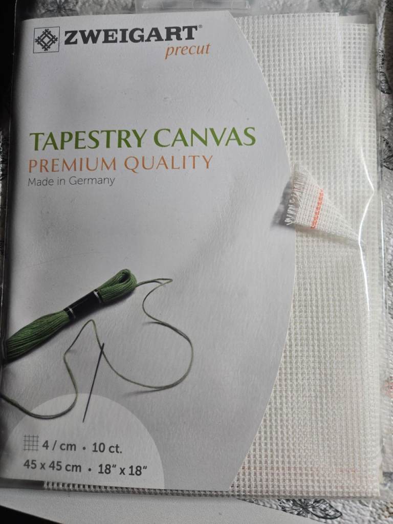 Also comes with a ZWEIGART precut tapestry canvas (18" x 18"), embroidery hoops and needles.