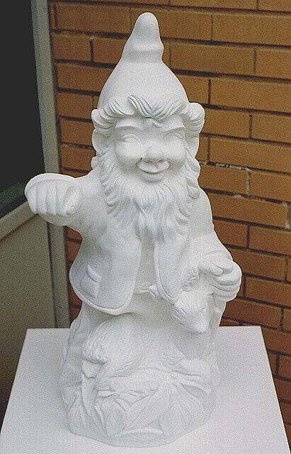 The 'standard gnome', a popular, though some may argue working class, garden 'ornament' has been transformed it into a classical form not only changing its appearance but its appreciation too. The resin figure was repaired and coated in satin white paint white to give marble/plaster like finish. The figure stands proudly atop a custom-made plinth, to further elevate its new importance and stature.
