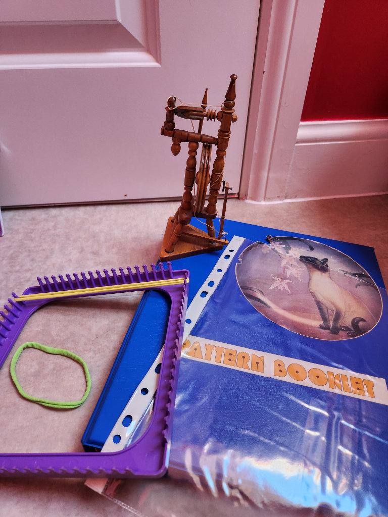 Can’t remember what this is called but you interlace stretchy bands over the spikes to make small mats – like coasters.