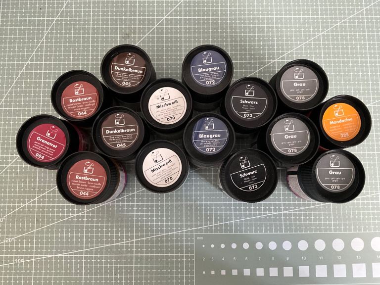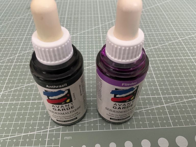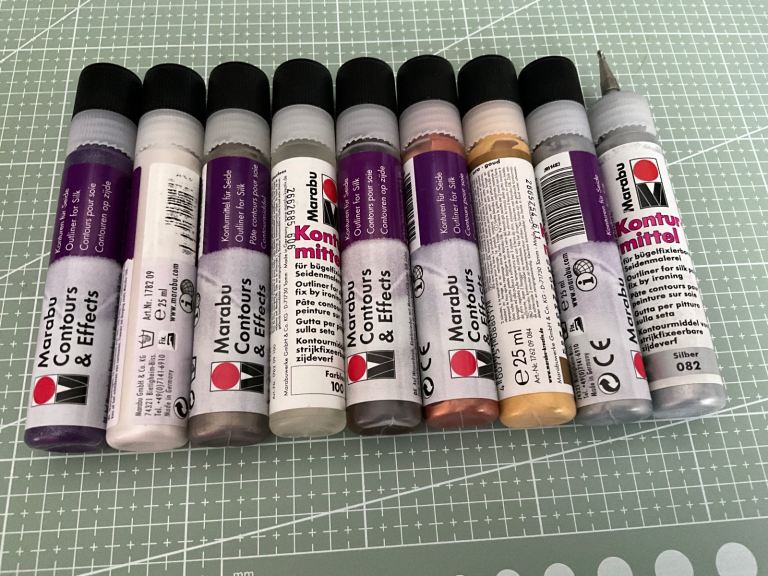 15no. 50ml pots of Marabu Silk Paint, nearly all full. In addition 9no. 25ml tubes of gutta, plus pins and 2 additional pots of paint.