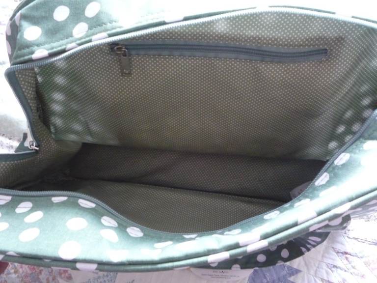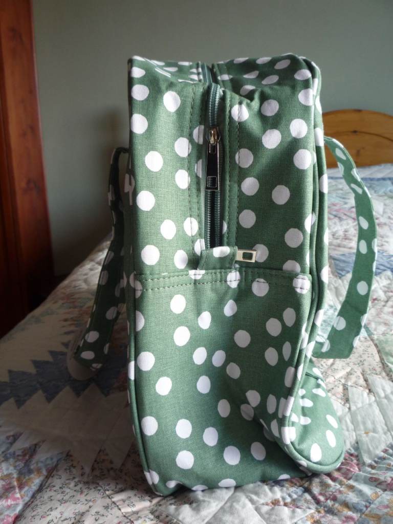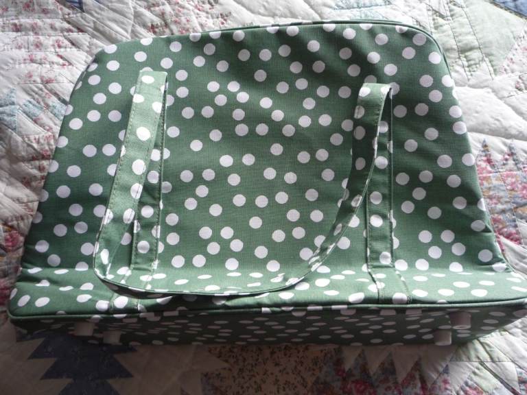 This polka dot sewing machine bag is unused and still has it's label attached. It is made by Milward and is 47x33x14cm. It has an inner zipped storage area and an outer pocket. Although designed as a bag for a sewing machine, it could be also be used as a hobby/craft kit bag.