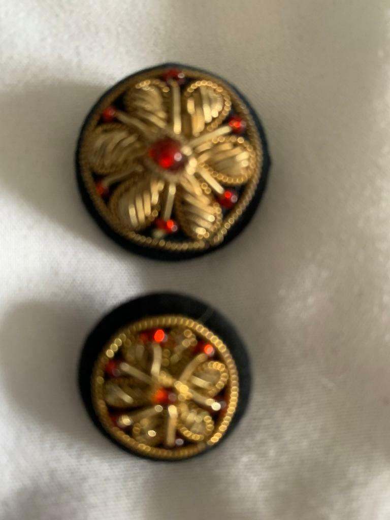 - 2 x velvet black, red & gold embellished buttons (new): 1 x 25mm diameter, 1 x 20mm diameter