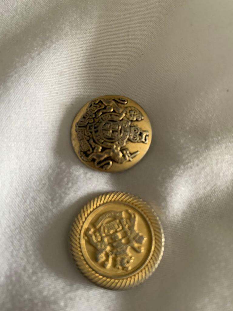 - 2 x gold metal buttons (used, not matching): 23mm diameter