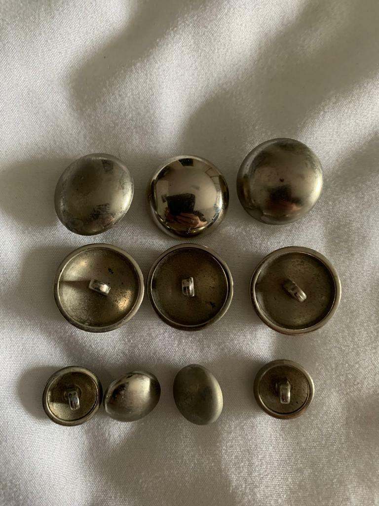 - 10 x silver plastic buttons (used): 6 x 22mm diameter, 4 x 15mm diameter