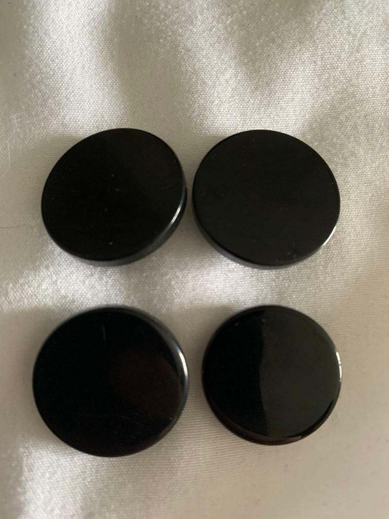 - 4 x plain black plastic buttons (new): 3 x 23mm diameter, 1 x 21mm diameter