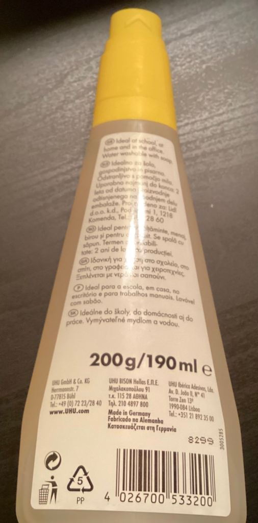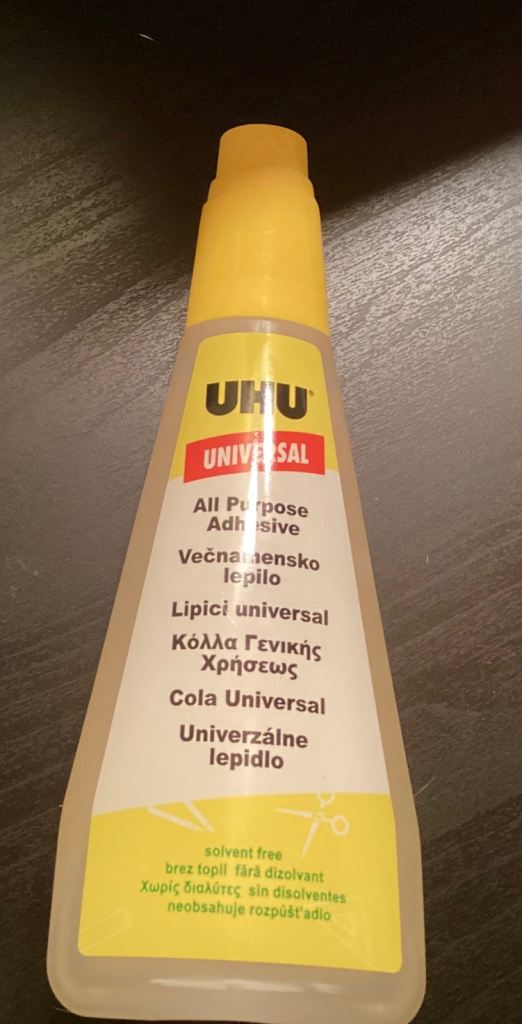 New uhu all purpose clear adhesive as used in schools, colleges, textiles for arts and crafts.